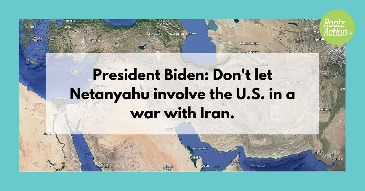 It is high time for the U.S. government to begin complying with the International Court of Justice, the United Nations General Assembly, and each of the treaties and domestic laws violated by each arms shipment to Israel. We need an arms embargo before it is too late! Public pressure, including from RootsAction, has prevented western governments from going to war with Iran for decades. But Israel is now expanding an existing war in an effort to create a wider war without any Congressional debate or decision. This could not be more dangerous, more dishonest, more opposed to the supposed ideal of democracy. The good people who have raised their voices and taken nonviolent action against the genocide in Gaza for almost a year, as well as those who have been silent, must all rise up together now and declare that nothing permits wider war, nothing justifies these outrages, no election season puts a pause on our moral duty to protect all life. Click here to send your email. |