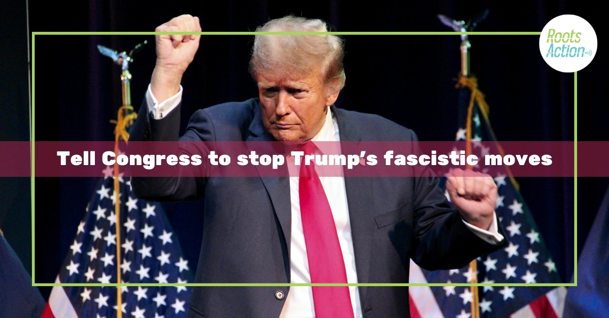 Today, RootsAction released the following statement: Donald Trump is trying to normalize repression and further entrench himself as a lawless tyrant answerable to no one. We condemn Trump’s deployment of troops to Los Angeles and call upon members of Congress to insist that his moves toward dictatorship must be unequivocally rejected. History will remember this moment. We cannot depend on elected officials to solve the problems that they themselves have helped to create with their overt actions or meek passivity. In communities across the United States, it is up to us to emphatically and nonviolently oppose every repressive move by the federal government. Terrorizing immigrants and enabling Trump to flagrantly break laws are parts of a vicious and dangerous playbook. There must be no compromise with it. Click here to send a strong message to your members of Congress. | |