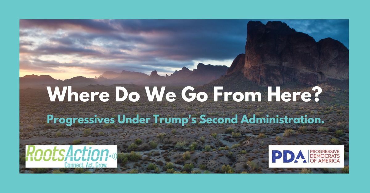 Dear Friend, Where Do We Go From Here? Please join RootsAction and Progressive Democrats of America on Zoom, December 4, at 8:30pm ET/5:30pm PT for "Where Do We Go From Here? Progressives Under Trump's Second Administration." This webinar will be a strategy session for our most fired-up core activists to huddle and think about how we can combat Trumpism while still moving the Democratic Party to champion progressive policies that working people need now (and that can help defeat the Right in the next election). GET THE LINK. Meanwhile, here's the good news: And the not so good news, and what to do about it: From the Democratic Leadership From Congress From Team Trump A new approach is called for: |